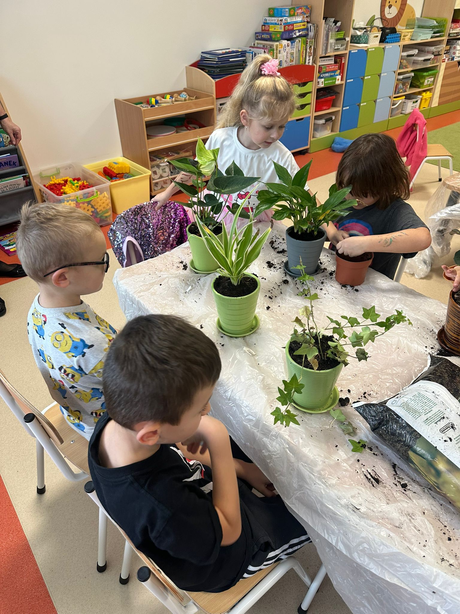 Dzieci własnoręcznie sadziły swoje roślinki, tworząc przydomowe mini-ogródki.